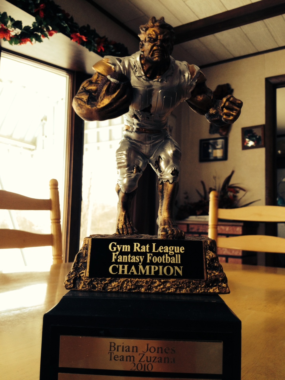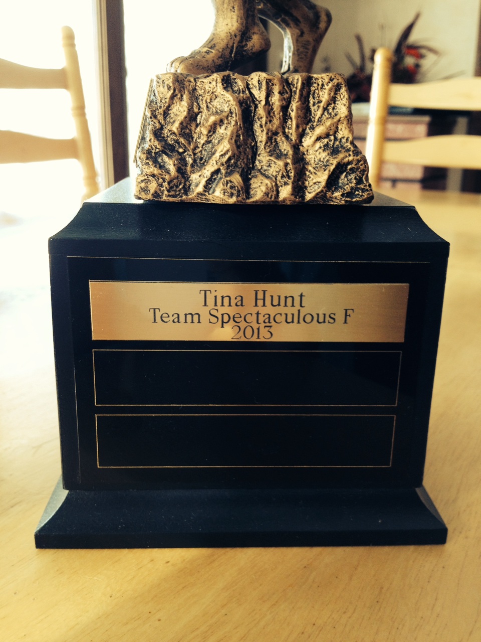 Yes, this is my name, on a trophy for something related to football. Yes, something other than a triathlon-related sport. I have to be proud of it. I mean, who’dve thought?!