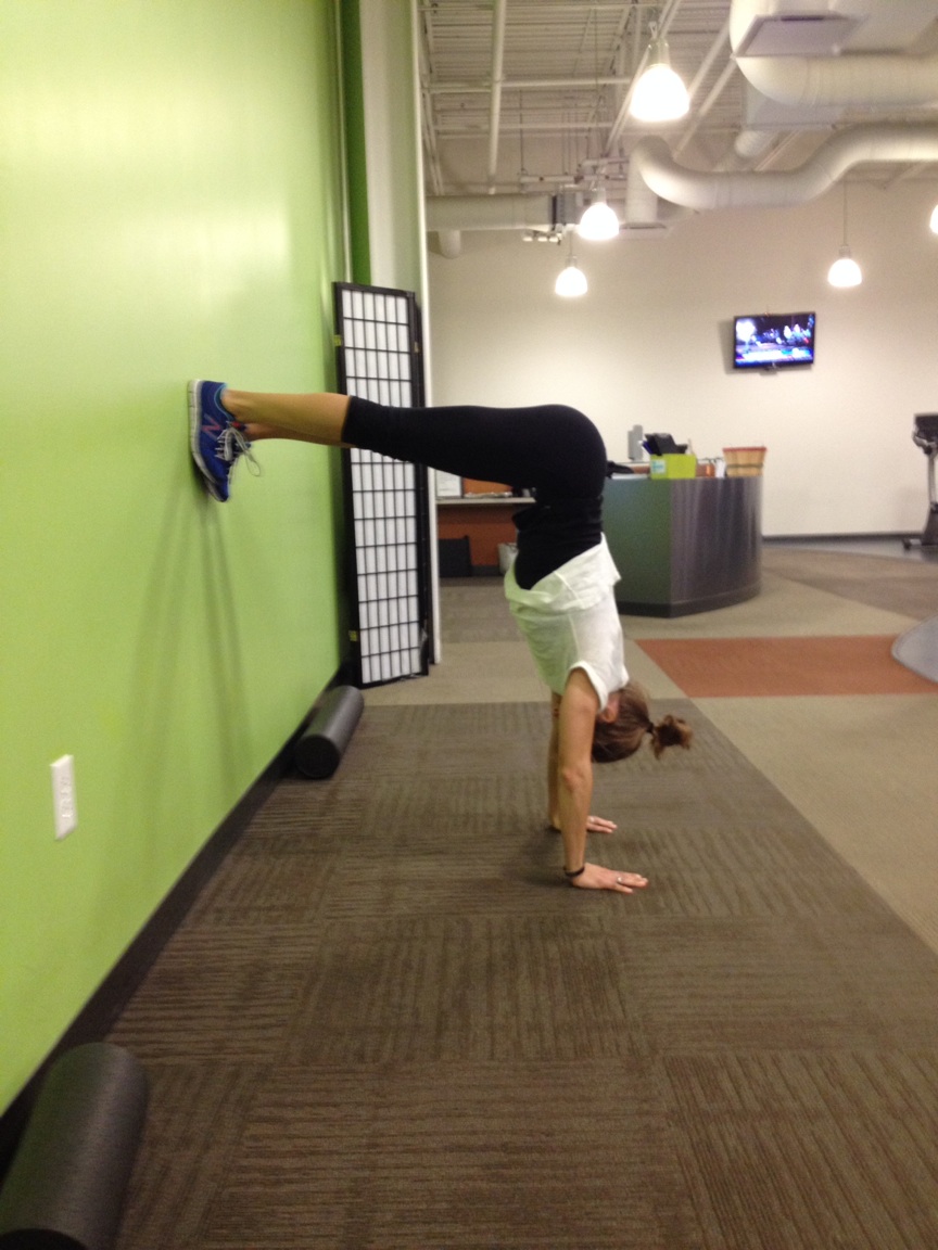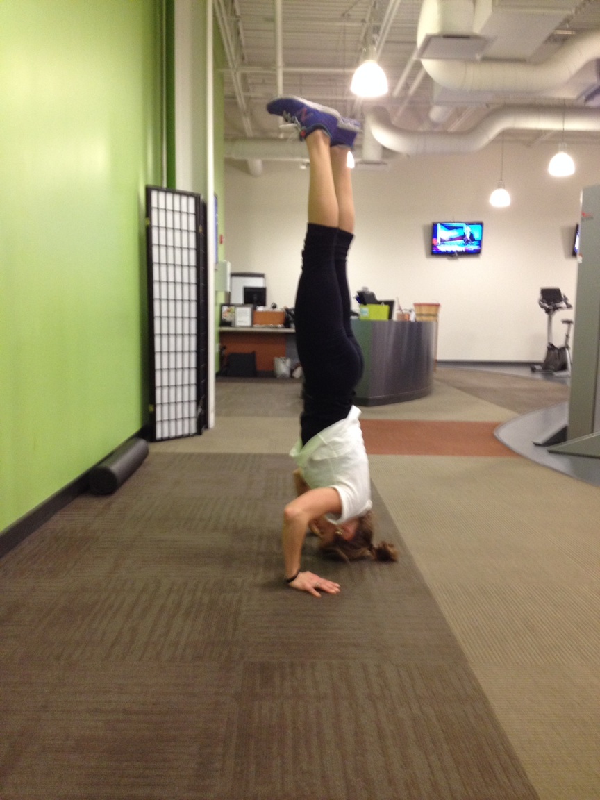 Inversion Practice #1: Feet against the wall, hips at 90 degrees. It is harder than it looks. It really is.Inversion Practice #2: One foot against the wall, the other one straight up. I need some work there.Inversion Practice #3: The “egg”. This is pretty simple, but it is good for working the core – you have to use your core musculature to pull your legs in.Inversion Practice #4: A headstand! Right from #3 – you just bring your legs straight up. Now I just need to be able to do a HANDstand – that was the first couple of attempts. Five minutes every day, that is what my reading tells me.